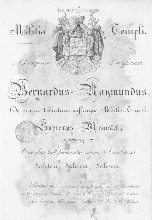 Титул диплома Ордена Храма при Бернаре-Раймоне Фабре-Палапра