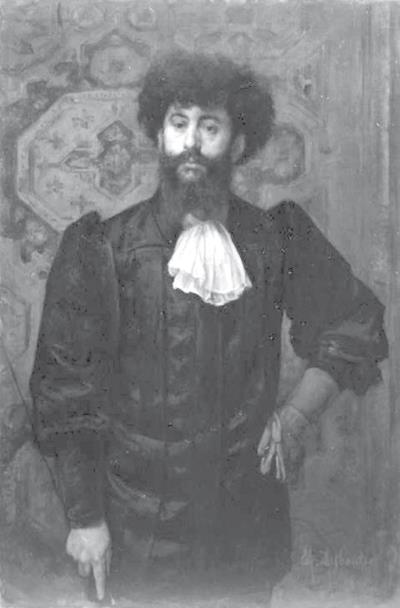 Портрет Сара Меродока Жозефена Пеладана со сжатой ладонью в так называемой львиной лапе