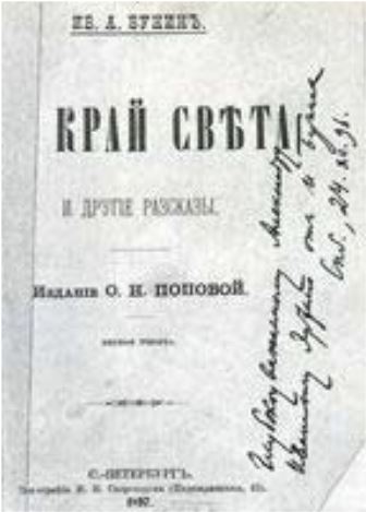 Литературное признание пришло к писателю после выхода в свет таких рассказов, как «На хуторе», «Вести с родины» и «На краю света», посвященных голоду 1891 года, эпидемии холеры 1892 года, переселению крестьян в Сибирь, обнищанию и упадку мелкопоместного дворянства. Свой первый сборник рассказов Бунин назвал «На краю света» («Край света», 1897).