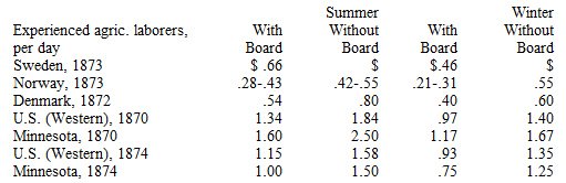 Ibid., 29. For work on the Chicago & Rock Island Railroad, Mattson received $.75 per day, and paid for board $1.50 a week, but the determination of the real wages, per month, requires a liberal deduction from these day-wages, for the process of acclimatization was severe in such malarial districts as that in which Mattson worked, and few men at first worked more than fifteen or twenty days in the month.