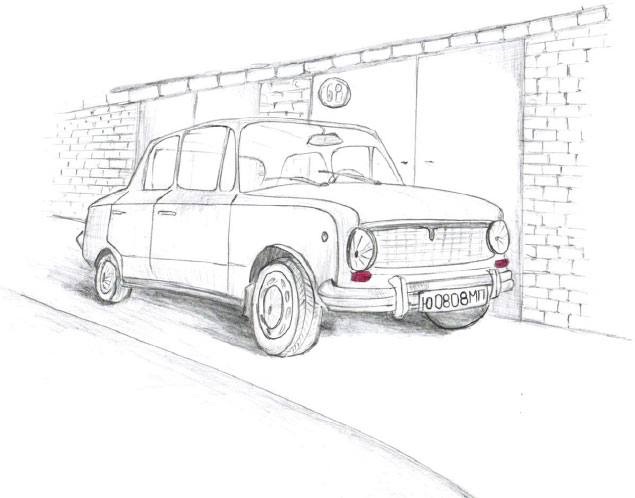 Вот так у нас появился личный гараж. На следующий день у меня уже было другое отцовское задание. Я окунал широкую кисть в круглую банку с очень вонючей краской и старательно водил ею по ржавому железу. Вечером мы все втроём – я, мама и отец – стояли в линеечку, освещённые закатным красным солнцем, и смотрели на гараж – на наш. Он был тёмно-зелёный. «Как сосновые иголки», – подумал я тогда. Что подумали мама с отцом, я не знал. Внутри стояла наша беленькая. На дверях висел большой навесной замок.