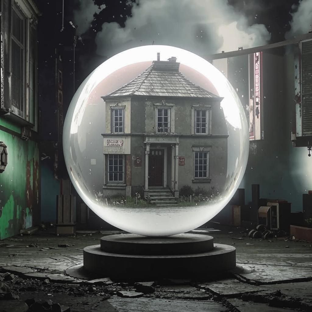 Это был дом в расцвете сил, полный жизни и света. Они увидели Джона Клауни, работающего в своей лаборатории, окруженного диковинными приборами. Там были счастливые люди…, много счастливых людей, они смеялись и танцевали в саду, но потом изображение начало искажаться. Свет померк, и в шаре начали появляться тени. Дом начал рушиться, люди исчезали, а Джон Клауни стал выглядеть отчаявшимся и безумным. В конце концов, изображение полностью исчезло, и шар снова стал просто куском хрусталя. Ребята стояли в оцепенении, потрясенные тем, что увидели. "Что это было?" – спросил Уильям, его голос дрожал. "Я не знаю," – ответила Алана. "Но это было связано с Джоном Клауни. И с тем, что случилось с этим домом." Шар стал резко вибрировать, поднялся гул, превратившись в оглушительный рев. Все резко отшатнулись, закрывая уши руками, но звук проникал в самое сознание, вызывая головокружение и тошноту. Вдруг комната задрожала, стены начали трескаться, и с потолка посыпались камни, а вокруг шара стали появляться трещины, словно от внутреннего взрыва. Из шара вырвался ослепительный луч света, пронзив комнату и устремившись в потолок. Ребята зажмурились, пытаясь защититься от яркого света, но он, казалось, проникал сквозь веки, обжигая сетчатку глаз. Когда свет немного рассеялся, Лара увидела, что шар парит в воздухе, окруженный кольцом искр. Из шара начал формироваться силуэт, смутный и призрачный, но постепенно обретающий очертания. Это была фигура неизвестного существа, сотканная из света и теней, с горящими глазами и зловещей усмешкой на лице. Лара замерла от ужаса, понимая, что они пробудили нечто древнее и могущественное. Фигура медленно повернулась ко всем, и они почувствовала, как ледяной ужас сковывает их тело. Ребята попытались закричать, но из горла вырвался лишь хрип. Существо протянулось к ним, и Лара поняла, что нужно оттуда бежать. Не успев отойти, существо сделало ещё один шаг. Комната наполнилась холодом, а воздух стал сгущаться, давя на грудь. Команда ребят увидели, как существо поднимается, готовясь нанести удар. В последний момент перед ними пронеслась вся их жизнь – детство, друзья, мечты, всё это должно было закончиться здесь, в этом проклятом доме, из-за их любопытства. Ребята закрыли глаза, готовясь к худшему, но удар не последовал. Вместо этого они почувствовали, как их тело пронзает нестерпимая боль, словно разрывается что – то на части изнутри. Крик застрял в горле, и сознание начало меркнуть. Алана почувствовала, как тьма поглощает их всех, унося в небытие. В последний проблеск сознания ребята увидели, как существо отступает, словно отброшенное невидимой силой, оно задрожало, а из глазниц брызнул тусклый свет. Голос, что звучал в её голове, теперь был полон ярости и боли…"Что… что же мы наделали?". Холод в комнате начал отступать, а воздух вновь стал легким. Все ребята лежали на полу, обессиленные и испуганные, не понимая, что произошло. С трудом поднявшись, они ощупали себя, никаких ран, лишь слабость и жуткий озноб. В голове пульсировала боль, словно после сильного удара. Лара огляделась вокруг. Комната выглядела так же, как и раньше, но что-то изменилось. "Нам нужно уходить!" – закричал Итан. "Сейчас же!" Все словно очнувшись, схватили друг друга за руки, и бросились обратно в коридор. Грохот преследовал их по пятам, эхо разрушения заполняло изу