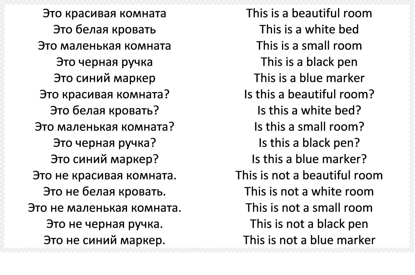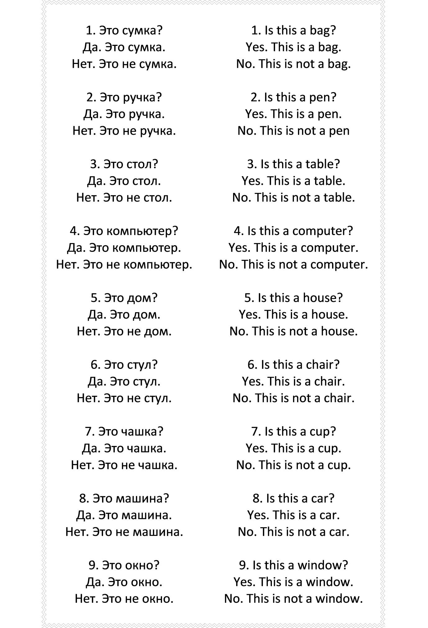Отработайте утвердительные, вопросительные и отрицательные предложения со словом "это"