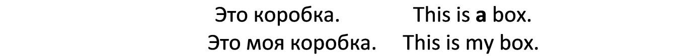 На английском "Это ручка" – "This is a pen", но "Это наша ручка"– "This is our pen". Во втором предложении артикль исчез, поскольку появилось слово “our” (притяжательное местоимение).