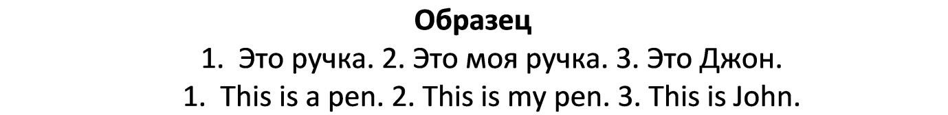 Зная, что по-английски “это”– "this is", а “ручка”– "a pen", мы можем составить наше первое простое предложение на английском: “This is a pen”, что означает "Это ручка".