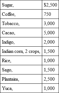 Cacao, rice, plantains, indigo, cotton, sago, yuca (a farinaceous plant, eaten like potatoes), Indian corn, and many other vegetable productions, might be cultivated to a much greater extent and with larger profit than they yield. We are astonished to find that with the inexhaustible fertility of the soil, with an endless summer, that gives the laborer two and three crops of some articles a year, agriculture generally yields a lower per centage than in our stern northern latitudes. The yield of a caballeria (thirty-two and seven-tenths acres) is as follows: