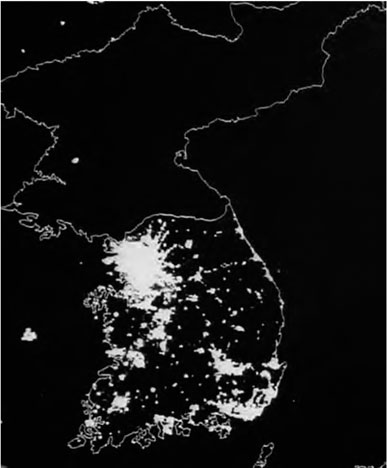 Ночные спутниковые снимки Северной и Южной Кореи