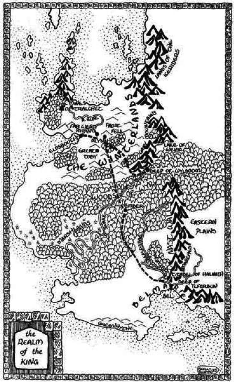 “What you need is to sit down.” She led him away to a broken boundary stone and forced him to do so and unbuttoned the diamond studs that held the sleeve to the body of the doublet. The wound did not look deep, but it was bleeding badly. She pulled loose the leather thongs that bound the wood-black knots of her hair and used them as a tourniquet above the wound. He winced and gasped and tried to loosen it as she tore a strip from the hem of her shift for a bandage, so that she slapped at his fingers like a child’s. Then, a moment later, he tried to get up again. “I have to find …”