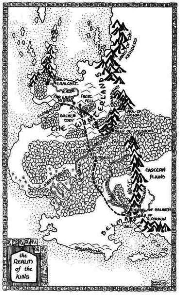 With the moon’s rising John and Jenny and Ian rode out from Alyn Hold to the stone house on Frost Fell, where Jenny had for so many years lived alone. It had been Caerdinn’s house, and Jenny had lived as the old wizard’s pupil from the time she was thirteen and the buds of power she’d had as a child began to blossom. A single big room and a loft, bookshelves, a table of pickled pine, a vast hearth, and a big bed. It was to this house that John had first come to her, twenty-two and needing help against one of the bandit hordes that had been the scourge of the Winterlands in the days before the King sent his protecting armies to them again. He’d been challenged, Jenny recalled, to single combat by some bandit chief—maybe the one who had slain his father—and had heard that no weapon could harm a man who’d lain with a witch.