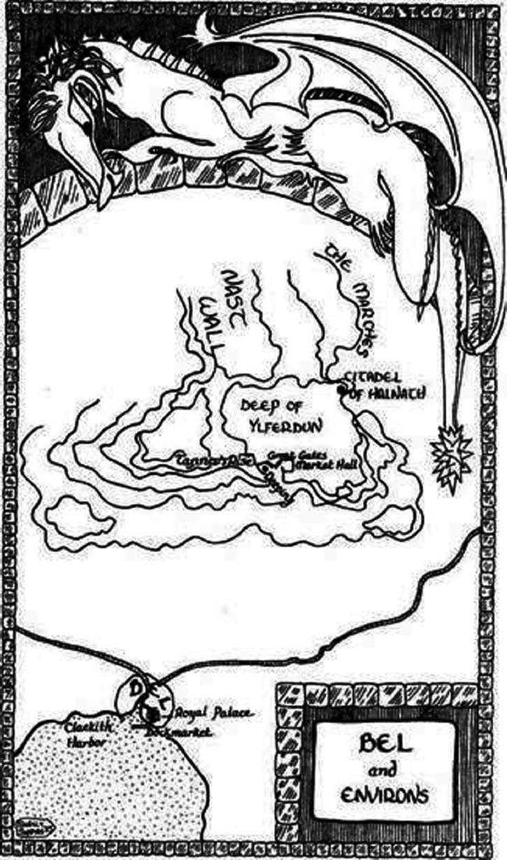THE TALE OF John Aversin and Jenny Waynest, and their involvement with dragons and with the Realm of Belmarie, begins in the book Dragonsbane, when Gareth of Magloshaldon, heir of King Uriens Uwanë II, rides north to the desolate province of the Winterlands to seek John Aversin’s help. Aversin is a Dragonsbane, the only warrior outside ancient legends ever to have slain a dragon, and the black dragon Morkeleb has descended upon the underground kingdom of the gnomes, the Deep of Ylferdun, close by the King’s city of Bel, and is spreading havoc and death.
