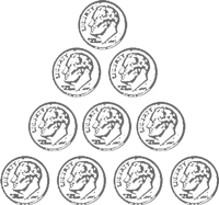 ВАША ПОПЫТКА!Переключение режимовПредлагаю вам когнитивное упражнение, которое поможет почувствовать переход от сфокусированного мышления к рассеянному. Сможете ли вы передвинуть всего три монеты так, чтобы повернуть треугольник углом вниз? Если вы расслабите восприятие и расфокусируете внимание, не сосредотачиваясь ни на чем конкретном, то решение придет очень легко.