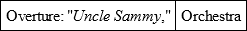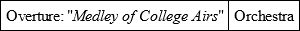 During the intermission black-faced youths emerged from the dressing-room under the balcony and visited friends in the audience and the orchestra performed its "Medley of College Airs." The programme's announcement of College Tableaux had whetted the audience's curiosity, and when the hall darkened, the bell tinkled and the curtain – still on its good behaviour – rolled noiselessly up, there was a general craning forward of heads.