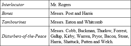 The World-Famous Aggregation of Senegambian Entertainers known as the Darktown Minstrels, just returned from their Triumphant Tour of Europe, Asia, Africa and New Jersey, where they delighted Royalty and barely escaped with their Lives!