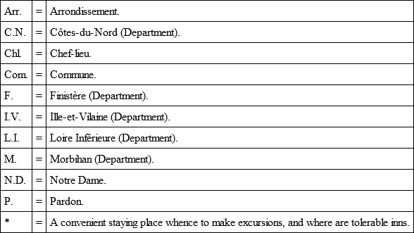 Less details have been given relative to the Department of Ille-et-Vilaine, at least as to certain portions of it which do not offer much of interest to encourage a visit, and with regard to Loire Inférieure only the truly Breton region of Guérande and S. Nazaire has been included.