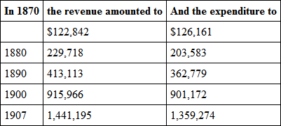 On January 1st, 1908, the Government balances amounted to a little over $800,000, and the only liability was for notes in circulation, amounting to $190,796.