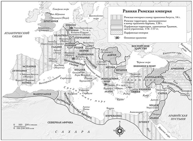 Строго говоря, наследники Августа всё же присоединили к империи две новые провинции путем вооруженных вторжений. Однако это расширение границ ничтожно по сравнению с динамикой двух предыдущих столетий, когда Рим захватил всё Средиземноморье и Северо-Западную Европу. Даже военная элита рано или поздно устает от битв и начинает интересоваться деньгами и удовольствиями, а не захватом земель. Медленно уходят империи – и здесь не бывает исключений. И всё же римляне проделали огромную – и успешную – работу, чтобы удержать свои позиции.