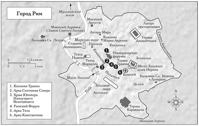 Мы начинаем нашу историю с основателя империи, Августа. Закончим же мы Константином, который спустя триста пятьдесят лет после Августа обратился к христианству и основал на Востоке другую империю – со столицей в Константинополе (совр. Стамбул). Приблизительно в середине временно́й шкалы между ними правил Адриан, называвший себя вторым Августом. Он сделал всё, что было в его силах, чтобы превратить Рим в мирное государство и открыть иноземцам путь в высшие слои общества. Впрочем, также он был тираном и убийцей, а это уже не говорит в его пользу.
