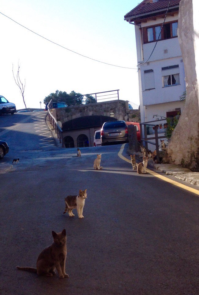 Даже бредя по солнцепеку, отягощенные грузом, мы не могли не восхищаться пейзажами. Как вам передать всю красоту одноэтажных маленьких домиков с разноцветными ставнями и огромными пышными при них палисадниками, выросших как грибы посреди полей у кромки леса – или всю прелесть древнего каменного источника, что дает напиться холодной воды именно в тот момент, когда тебе более всего это нужно. А еще испанцы любят кошек.