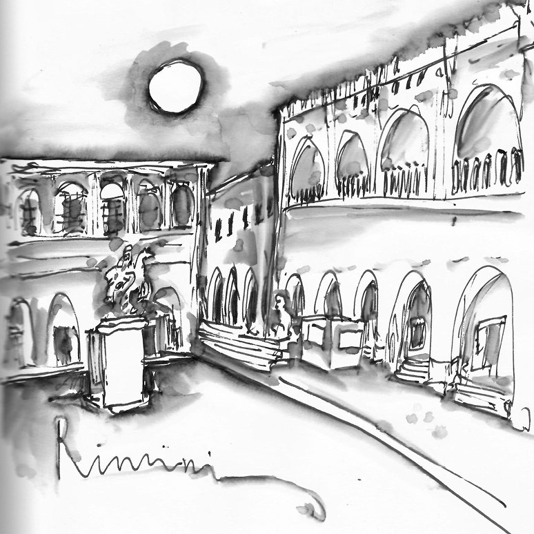 Римини богат самыми первостатейными культурными ассоциациями: впечатлительному туристу хватило бы того, что, к примеру, фонтан на Кавур нравился Леонардо да Винчи, о чем сообщает мемориальная доска; и что именно здесь случилась трагическая любовь Паоло и Франчески, многократно воспетых в стихах (Данте!) и в оперной музыке, после чего предки этой самой возлюбленной пары оставили в истории мировой культуры свой неизгладимый след храмом, который построил Альберти, а украшали Джотто и Пьеро делла Франческа. Не говоря о Рубиконе, разумеется, который и я сподобился перейти; точнее, на машине переехать.