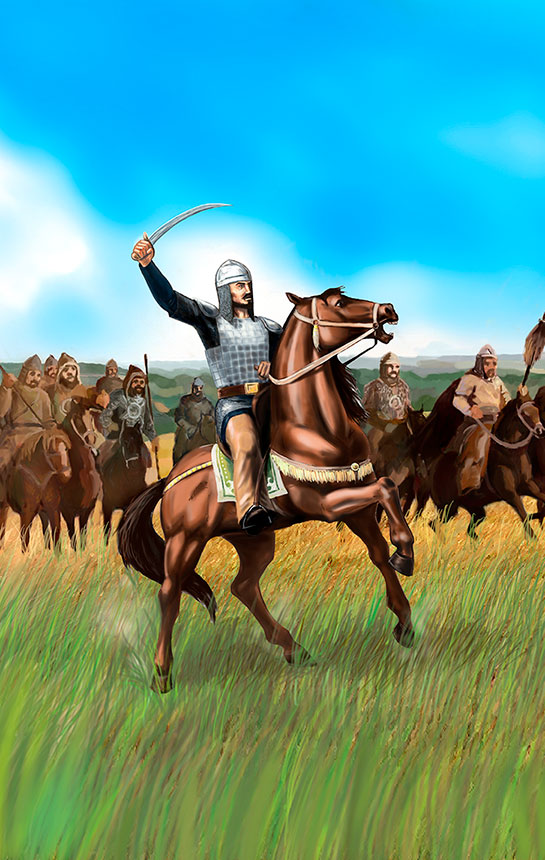 Под ликующие возгласы своих воинов окрыленный Чарыш ноян, сидя верхом на коне, поднял окровавленного батыра на копье высоко над головой.