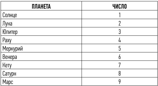 Отношения чисел к планетам и есть ключ нумерологии. В ведической нумерологии используются девять планет – это Солнце, Луна, Меркурий, Венера, Марс, Юпитер, Сатурн, Раху и Кету.