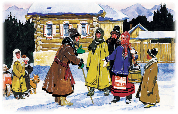 В праздничный день и пришёл он к тем людям, у кого сирота жила. Видит – полна изба народу, больших и маленьких.