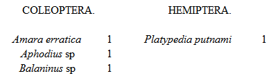 Summary.– With so small an amount of material it is not safe to draw general conclusions, but in the case of Myadestes one point seems clear – the bird's favorite food is small wild fruit, and as long as this is abundant the bird will probably not attack cultivated varieties; but should any portion of the region occupied by the solitaire be cleared of its wild fruit and cultivated species be introduced these would likely be preyed upon. Under such conditions this bird, now perfectly harmless, might inflict considerable damage.