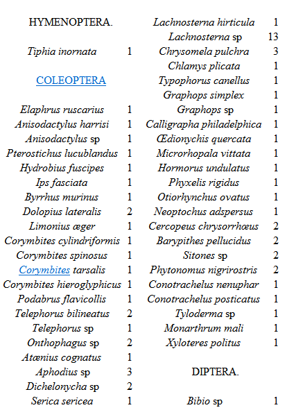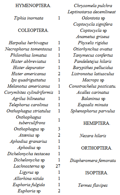 Following is a list of the insects identified in the stomachs of the wood thrush and the number of stomachs in which each was found: