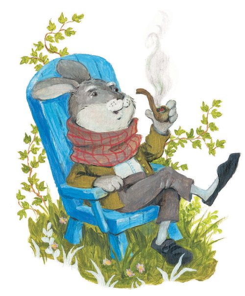 Мистер Прыгунок был и вправду преклонных лет. Он любил сидеть на весеннем солнце рядом с норой, укутавшись в шарф, и курить трубку с кроличьим табаком.