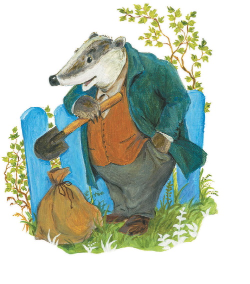 Сейчас он сидел на солнышке и с удовольствием беседовал с барсуком Томми, проходившим мимо с мешком, небольшой лопаткой, помогавшей ему рыть землю, и несколькими ловушками для кротов. Барсук горько жаловался на нехватку фазаньих яиц из-за того, что мистер Лис берёт больше, чем ему полагается. «А выдры зимой, пока я спал, – сказал он, – извели всех лягушек. Я уже недели две как голодаю. Ем одни земляные каштаны. Если так пойдет и дальше, боюсь, что стану вегетарианцем и съем собственный хвост!»