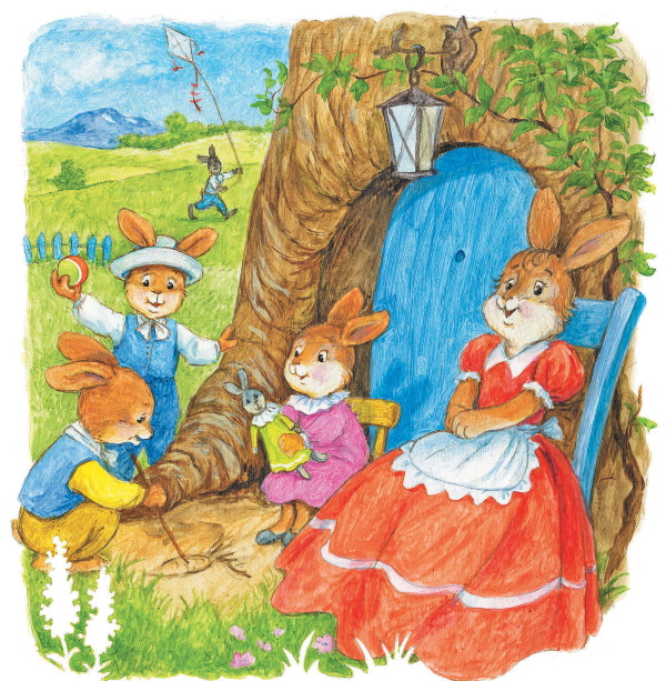 Крольчата уже слегка подросли, могли открывать свои голубые глазки и брыкаться. Они лежали в мягчайшей постели из кроличьей шерсти и сена в отдельной неглубокой норке внутри главной кроличьей норы. Сказать по правде, старый мистер Прыгунок совсем о них забыл.