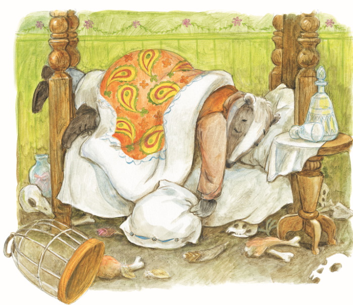 Барсук Томми на постели мистера Лиса продолжал храпеть всё так же громко и размеренно. А крольчат и там не было видно.