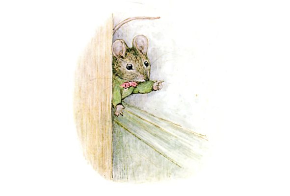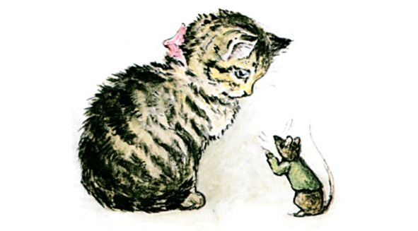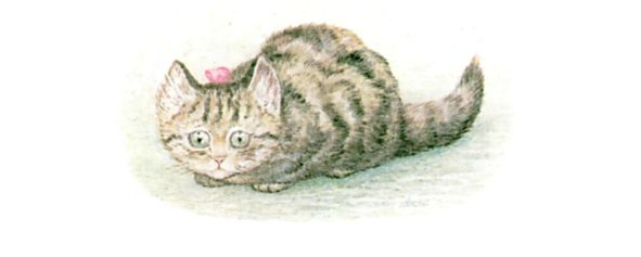 This is the Mouse peeping out behind the cupboard, and making fun of Miss Moppet. He is not afraid of a kitten.