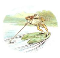 Мистер Джереми надел непромокаемый плащ и пару блестящих галош, взял удочку с ведерком и длинными-предлинными прыжками поскакал к местечку, где держал лодку.