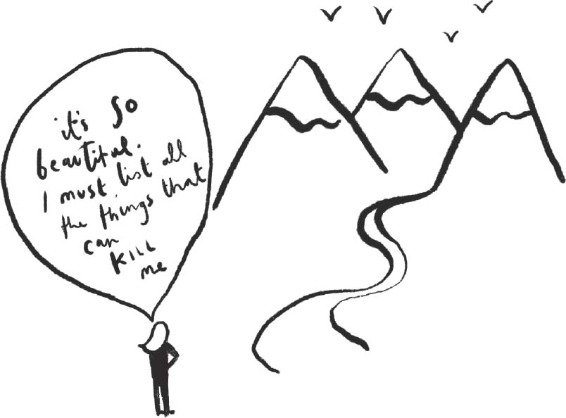 I am on holiday and I walk across some grass. I feel a sting on the sole of my foot and look down to see a wasp. Immediately, I panic. My brain flies straight to the certain knowledge that I will develop anaphylactic shock from this sting. I can’t breathe – it’s happening fast. I run to the house, and I can feel my lips swelling up, my lungs constricting. I’m clawing at my throat, desperate to get some air in but I can’t and we’re miles away from help. I signal to my family – frantically trying to make them understand that I’m no longer able to breathe as they try and calm me down. I lie down on the bed as my mum strokes my hair and I wait for death. But ten minutes later I am forced to concede that what I thought was an allergic reaction was a panic attack brought on by my powerfully anxious brain. I’m so wiped out by it, and so embarrassed and sad that this is where my mind goes, that I have to have a two-hour nap. That fear of anaphylaxis stayed with me for a further two years. I wasn’t twelve by the way, I was twenty-nine.