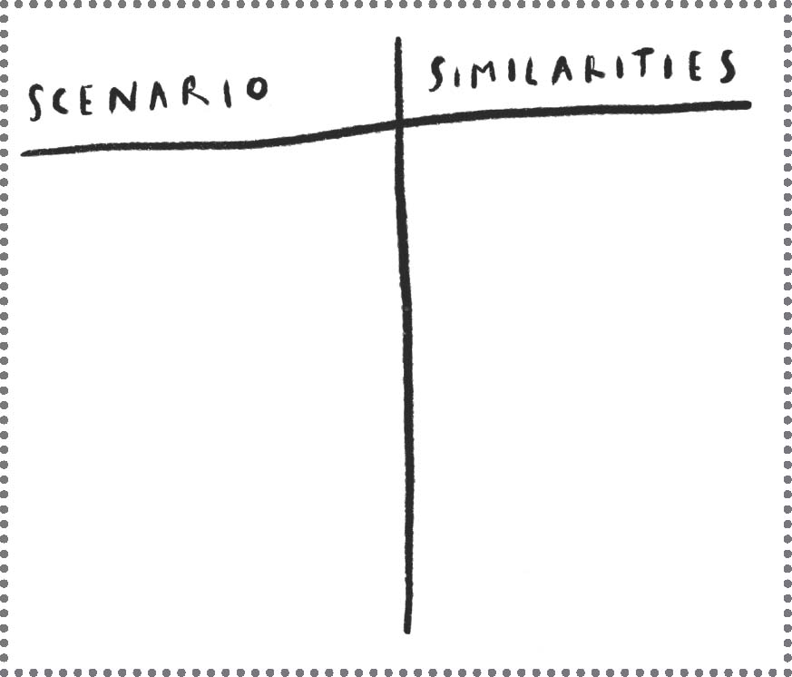 What can you take away from the comparison? Do both scenarios involve a specific place? Or a time when you’re tired? Begin to notice what common threads link your worries and remind yourself of them when you next feel anxious.
