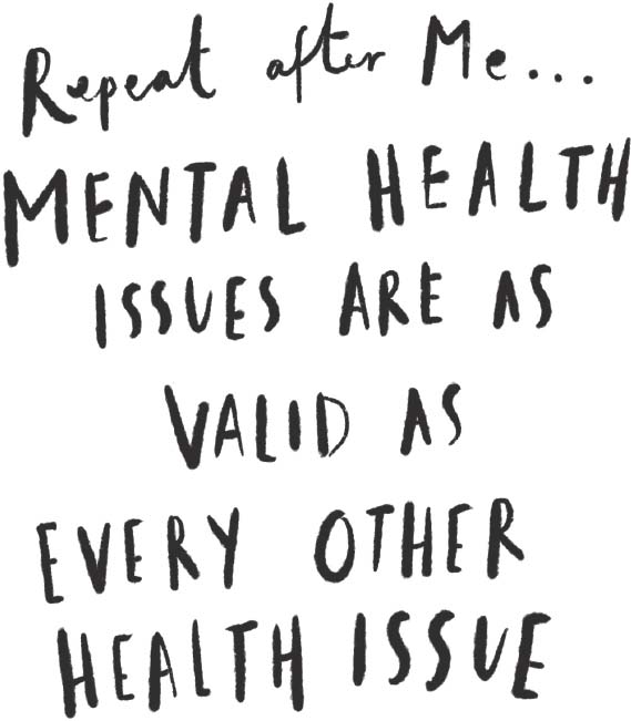 I’ve felt like that, to a lesser extent. Affronted when GPs haven’t taken my low blood sugar seriously. Confused when migraines were put down to anxiety and not a brain tumour as I was convinced. My low energy was tested, and my insomnia discussed, but suggestions that I might be feeling things that weren’t ‘real’ was very upsetting. Why? Why would a mental-health issue feel less valid to many of us than a broken leg, say? Partly it’s the stigma, isn’t it? That a broken leg feels serious, totally genuine, more worthy of sympathy – a mental illness might be weak, or seen as our fault, or dismissed as attention-seeking.