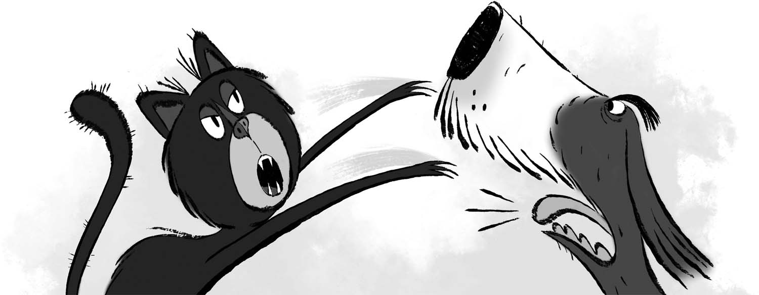 Kitty hissed again and slashed at Mr Dog with her sharp claws. A red strip of fabric was torn clear from his neckerchief collar.