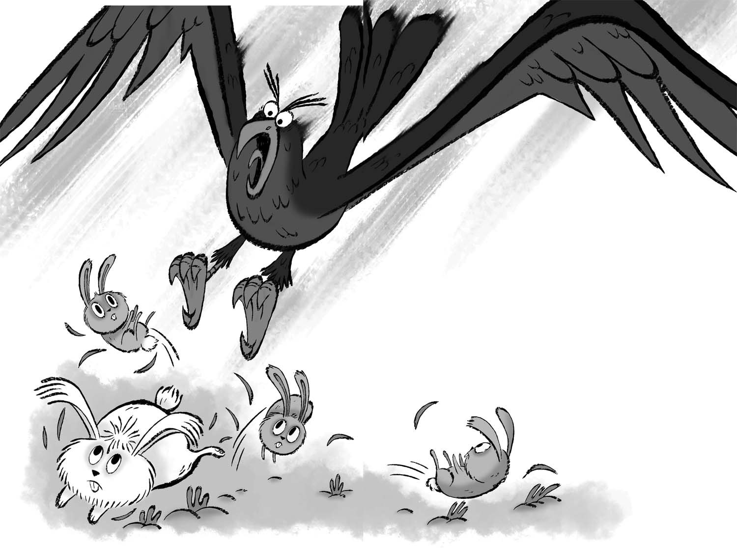 Even as Mr Dog opened his jaws to bark a warning, he knew it was too late. The red kite was a swift and powerful hunter. As it dropped from the sky to make a catch, its curved beak opened, ready to bite down on the baby bunnies.