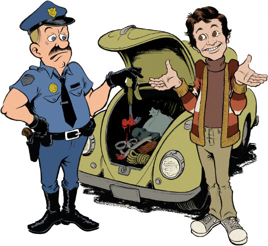 В багажнике офицер обнаружил сумку, из которой достал один за другим все инструменты Банди: лыжную маску, проволоку, ледоруб, веревку, наручники и злосчастную монтировку. При более тщательном осмотре были найдены фонарь, перчатки и страшная самодельная маска из чулок. Банди был привлечен к уголовной ответственности по обвинению в опасном вождении и хранении орудий взлома. Это был его первый арест во взрослом возрасте. После этого все быстро покатилось к финалу.