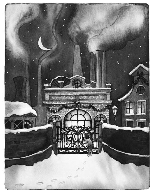 Позади стоял Рождественский дом, который – как и всё остальное на Рождественской площади – некогда принадлежал отцу Макса Гриммссона, Гримму Гриммссону, скандально известному эльфу-сапожнику. Его фабрика закрылась после того, как стало известно, что он крал деньги у своих работников.