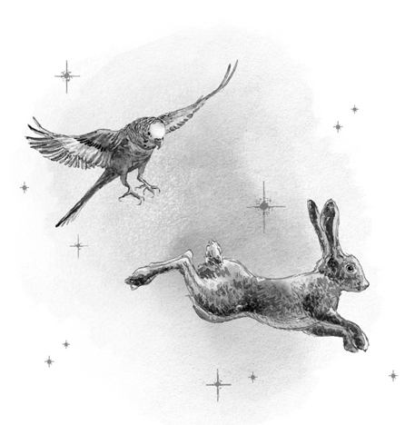 Он поднял одну из клеток, и её залил лунный свет. Джордж увидел, что внутри сидит жёлто-зелёный волнистый попугайчик. Птичка стучала клювом по маленькому колокольчику, и тот издавал тоненькую трель.