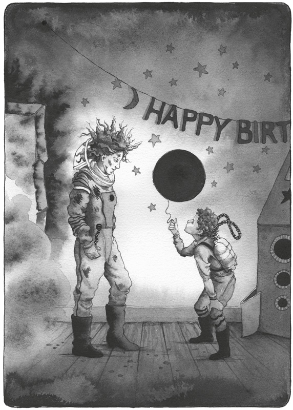 Конечно, праздник уже был испорчен. Они всё-таки поиграли в Приколи Спутник на Околоземную Орбиту, но Харрисон проткнул Международную космическую станцию насквозь и выбыл из игры. Потом они поиграли в Нарасти Нейтронную Звезду, и каждому досталась игрушка – кроме Харрисона. Наконец, они поиграли в Спящие Сверхновые, и Шелли поймала Харрисона на том, что он расчёсывал экзему вместо того, чтобы лежать смирно, и взорвала его, так что остаток игры ему пришлось сидеть в сторонке.