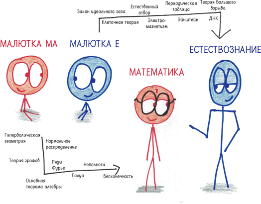 Раньше, когда естествознание и математика были еще пухлыми младенцами, они не просто напоминали друг друга – между ними нельзя было провести границы. Исаака Ньютона нисколько не тревожило, кем назовут его историки – естественником или математиком. Он был тем и другим одновременно. То же самое можно сказать о его умных старших братьях – Галилее, Кеплере, Копернике. Для них естествознание и математика были взаимосвязаны и неотделимы друг от друга. Их ключевая идея состояла в том, что физический космос следует математическим рецептам. Вещи повинуются уравнениям. Вы не можете изучать одно без другого, точно так же как вы не можете съесть по отдельности ингредиенты пирога, если он уже выпечен.
