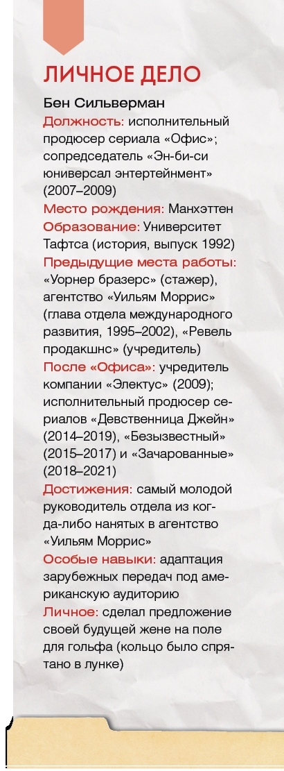 Бена Сильвермана было не так-то легко удивить. Он с 1995-го работал в престижном агентстве «Уильям Моррис» главой отдела международного развития. Проще говоря, его задачей было выцеплять успешные телешоу, выпущенные за рубежом, и «переупаковывать» их под американскую аудиторию.