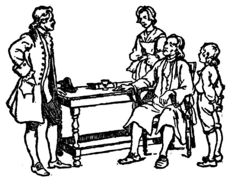 I did not disapprove of the design, but, as Georgia was then destitute of materials and workmen, and it was proposed to send them from Philadelphia at a great expense, I thought it would have been better to have built the house here, and brought the children to it. This I advis'd; but he was resolute in his first project, rejected my counsel, and I therefore refus'd to contribute. I happened soon after to attend one of his sermons, in the course of which I perceived he intended to finish with a collection, and I silently resolved he should get nothing from me. I had in my pocket a handful of copper money, three or four silver dollars, and five pistoles in gold. As he proceeded I began to soften, and concluded to give the coppers. Another stroke of his oratory made me asham'd of that, and determin'd me to give the silver; and he finish'd so admirably, that I empty'd my pocket wholly into the collector's dish, gold and all. At this sermon there was also one of our club, who, being of my sentiments respecting the building in Georgia, and suspecting a collection might be intended, had, by precaution, emptied his pockets before he came from home. Towards the conclusion of the discourse, however, he felt a strong desire to give, and apply'd to a neighbour who stood near him, to borrow some money for the purpose. The application was unfortunately [made] to perhaps the only man in the company who had the firmness not to be affected by the preacher. His answer was, "At any other time, Friend Hopkinson, I would lend to thee freely; but not now, for thee seems to be out of thy right senses."