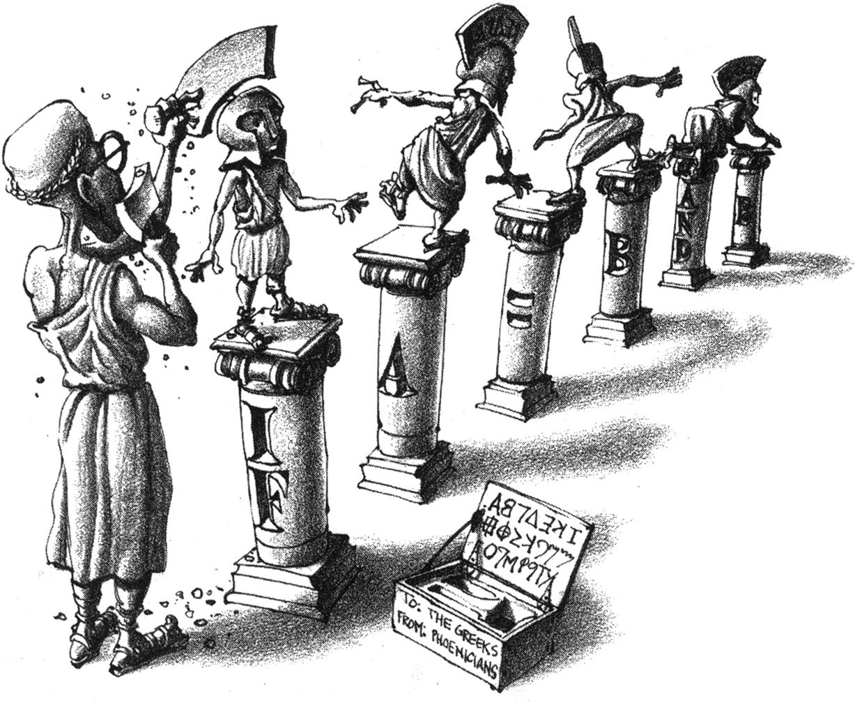 Ключ к новому образу мышления в том, что буквы алфавита, в отличие от пиктограмм, не являются изображениями предметов. Например, «А» сама по себе не отображает чего-то специфического. Алфавит систематизирует, кодифицирует мир в нечто абстрактное, что можно разделить и контролировать. Таким образом, алфавит в какой-то степени еще на шаг отдалил нас от окружающей среды. И он же дал нам новый взгляд на прошлое.