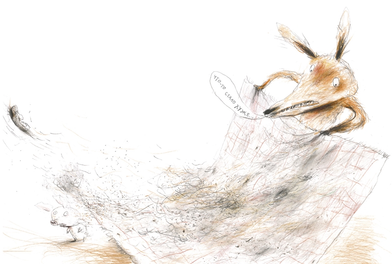 Как-то раз Поросёнок Хвост Морковкой шёл мимо норы Лиса – своего лучшего друга. Лис, пыхтя и надсаживаясь, тянул наружу что-то длинное, большое и тяжёлое.