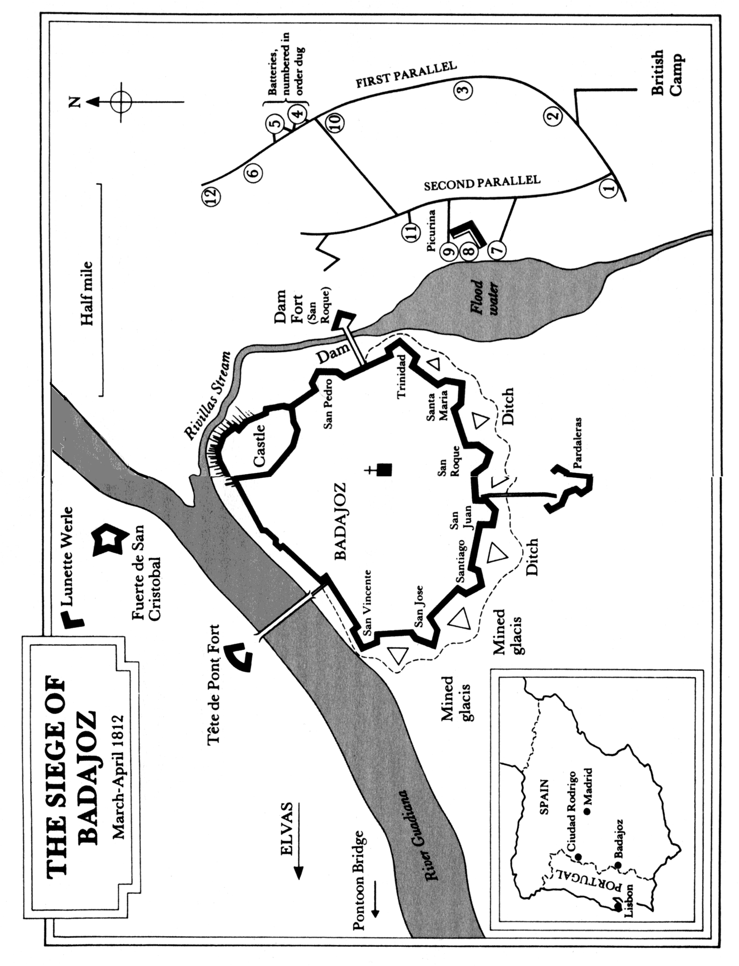 Ciudad Rodrigo was just the beginning. There were only two roads from Portugal into Spain that could take the weight of heavy artillery, the endless grinding of supply carts, and the pounding of battalions and squadrons. Ciudad Rodrigo guarded the northern road and tonight, as the church bell sounded seven, Wellington planned to take the fortress. Then, as all the army knew, as all Spain knew, there was the southern road to capture. To be safe, to protect Portugal, to attack into Spain, the British must control both roads, and to control the southern road they must first take Badajoz.
