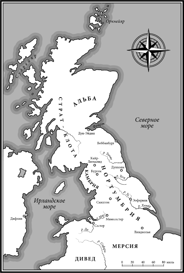 * * *Я бесился, потому что Этельстан поклялся, что никогда не вторгнется в Нортумбрию, пока я жив. И вот он в Эофервике с армией, а я по его просьбе прячусь с восьмьюдесятью тремя воинами за гребнем холма к югу от Беббанбурга. Меня подмывало отказать Оде, посоветовать ему уплыть на своем чертовом корабле обратно в Эофервик и плюнуть Этельстану в лицо. Я чувствовал себя обманутым. Я обеспечил Этельстану трон, но буквально с самого дня битвы под Крепелгейтом он делал вид, что не замечает меня. Я этому только радовался. Я нортумбриец, живу вдали от владений Этельстана, и все, чего я хочу, – это чтобы меня оставили в покое. Но в глубине души я понимал, что покоя не будет. Во время моего появления на свет саксонская Британия разделялась на четыре страны: Уэссекс, Мерсию, Восточную Англию и мою родную Нортумбрию. Король Альфред, дед Этельстана, мечтал объединить их все в страну под названием Инглаланд, и эта мечта близилась к воплощению. Этельстан правил Уэссексом, Мерсией и Восточной Англией, оставалась только Нортумбрия. Этельстан дал мне клятву, что не покусится на нее, пока я жив. И вот теперь он вошел во главе армии в мою страну и воззвал ко мне о помощи. В очередной раз. В глубине души я понимал, что Нортумбрия обречена – либо Этельстан получит ее, либо Константин присоединит к своим землям. И пусть уж лучше это будут люди одного со мной языка, саксонского, который мы называем энглийским. Вот поэтому я и повел за собой из Беббанбурга восемьдесят три воина, чтобы устроить засаду на короля Гутфрита Нортумбрийского, бежавшего от вторжения Этельстана. Солнце стояло высоко и припекало, день выдался тихий.